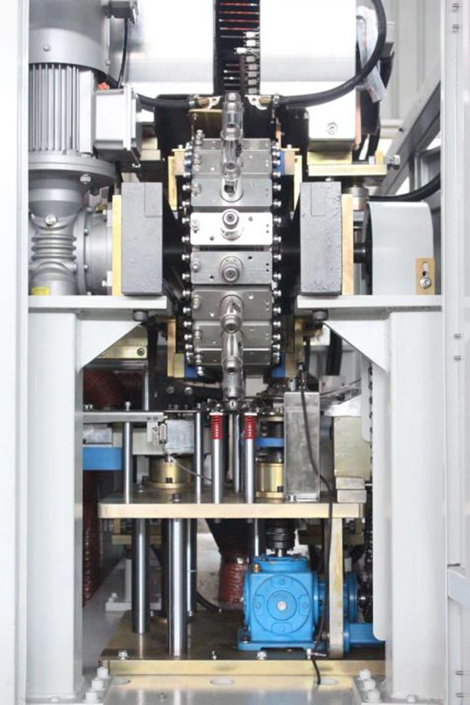 Adopte un sistema de descarga de preformas continuo, haga que el paso de preformas se ajuste al paso necesario de soplado, para ahorrar energía.